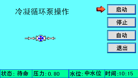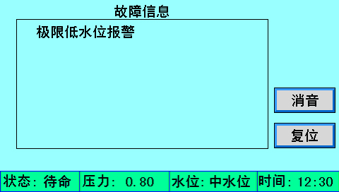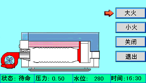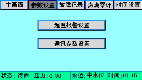 主画面上同时显示控制器状态、系统压力、水位、时间、燃烧器状态、泵状态等。