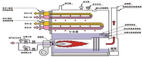 2、可一机多用:一台锅炉可配置多个换热器,供应不同温度、不同用途的热水,如中央空调用水、卫生热水、工艺热水等。